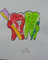 และทุกสัปดาห์เด็ก ๆ จะสำรวจฟันของตนเองถึงความเปลี่ยนแปลงที่เกิดขึ้นกับฟัน พร้อมทั้งเล่าให้กับเพื่อนและคุณครูได้ฟัง คุณครูสอดแทรกการทดลองเกี่ยวกับวิทยาศาสตร์ แป้งข้าวโพด แป้งข้าวเจ้า การละลายและการจับตัว ความเหนียว แรงดึงดูดของแป้งทั้งสอง เด็กๆ ต่างสนใจในการทำกิจกรรมเป็นอย่างดี และสามารถถ่ายทอดสิ่งที่สังเกตเห็นและความรู้สึกที่ได้จากการสัมผัสได้ดีทีเดียวค่ะ อย่างเช่น